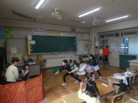 1組は道徳で「くまさんのおちゃかい」。さるさんの行動について考えることで、うそやごまかしをせず、素直に謝ることの大切さに気づき、うそやごまかしのない明るい心で生活しようとする意欲を育てます。