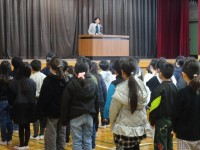 今年は放課中に大きな地震が起こったという想定です。先生がいなくても、この3つの行動をすることが目的です。