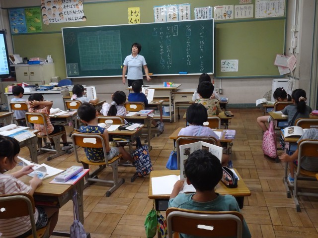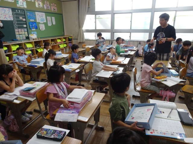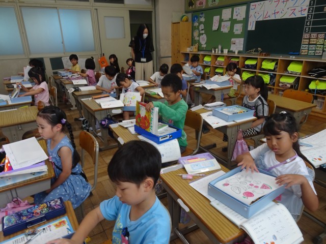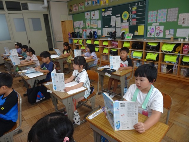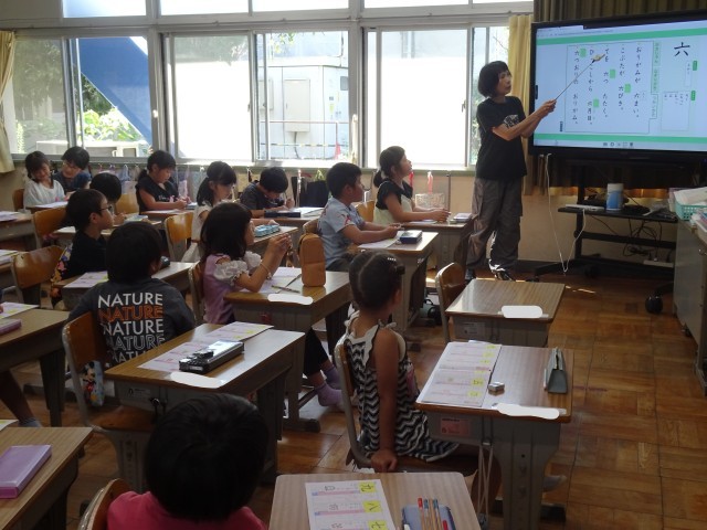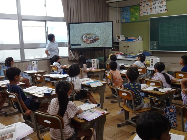 「うみのかくれんぼ」のお話をもとに、問いとその答えとなる文を探しているクラス。