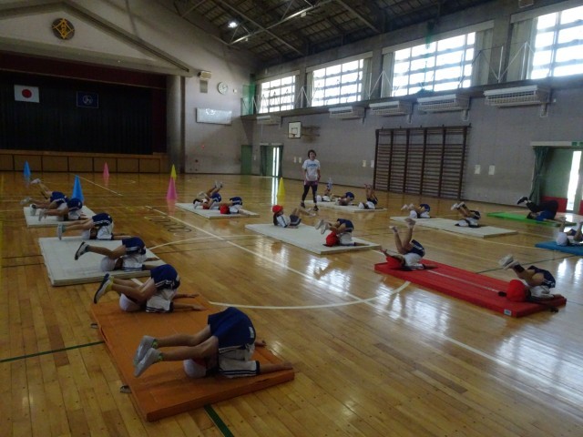 「おへそを見る」「腕で支える」など、マット運動での大切なことを教えていただきました。