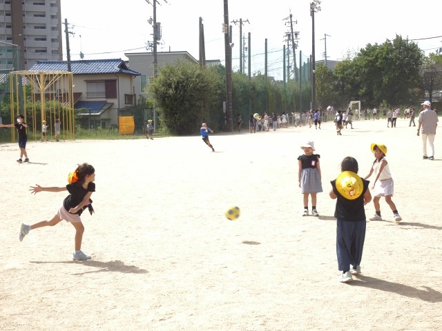 運動場には、サッカーやドッジボールなどのボール遊びの子たちがたくさんいます。