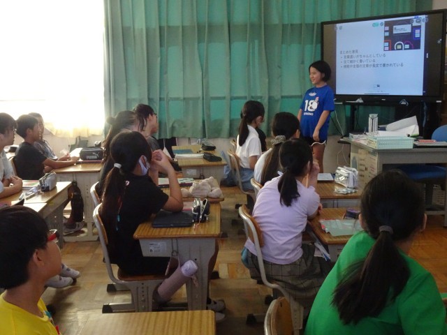 この写真は、グループで考えたことをまとめて、発表しているところです。