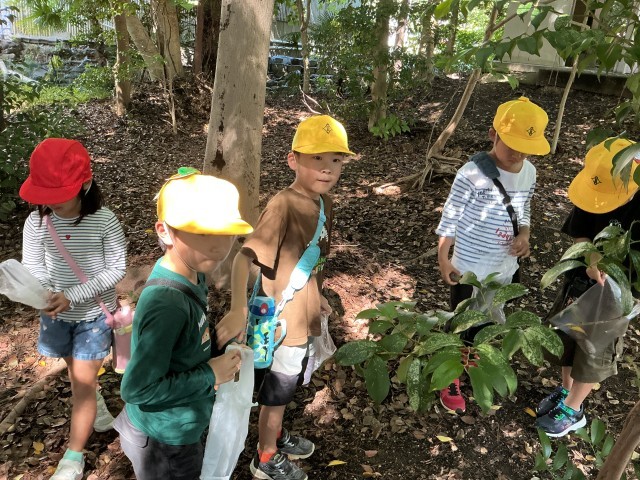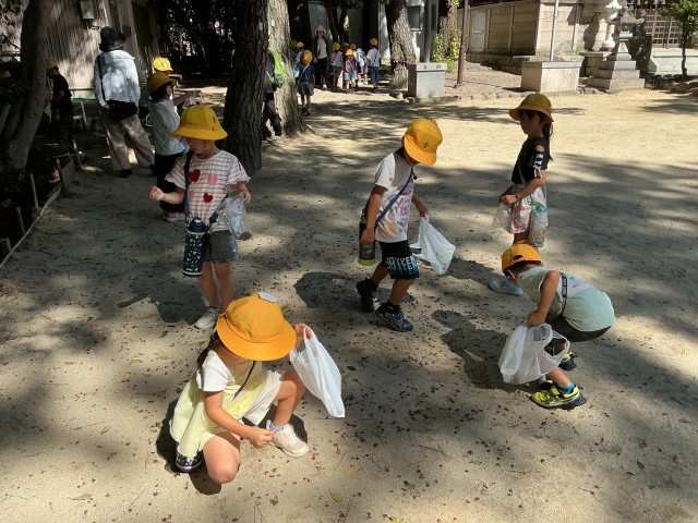 1年生は長草八幡社に木の実拾いに出かけました。