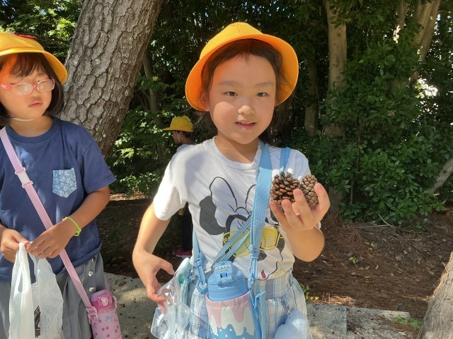 昨日までの雨の影響から、まつぼっくりの傘は閉じているものが多かったですが、思い思いにまつぼっくりや落ち葉を探しては袋に入れていました。