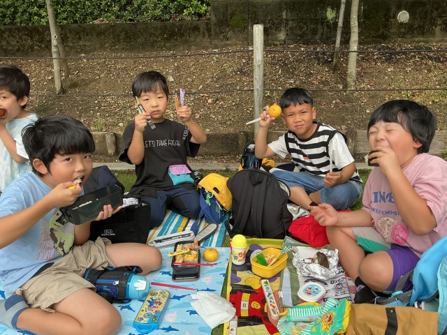 飼育員さんのお話を聞いた後は、お弁当の時間です。