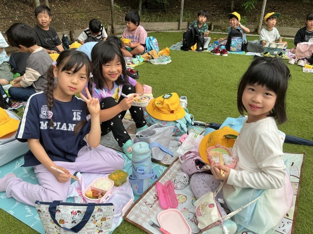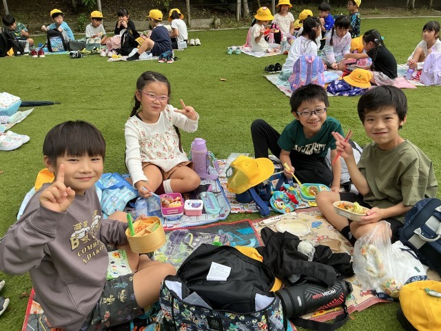 おうちの方が作ってくれたお弁当をおいしく食べた後は、グループごとに分かれて園内を見学しています。