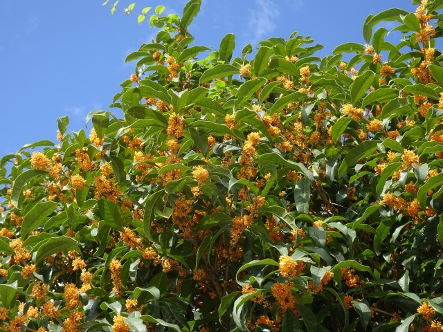 共長小の校地内には、何本かキンモクセイがあり、今ちょうど花盛りです。