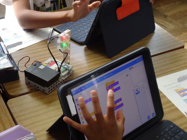 信号が赤や青に点滅するようにプログラミングすることに挑戦です。