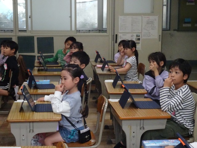 1年生も、ずいぶん上手にタブレットを扱えるようになりました。