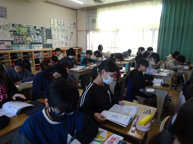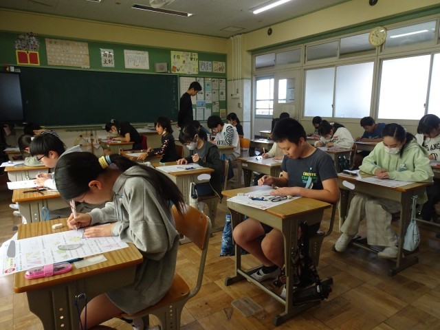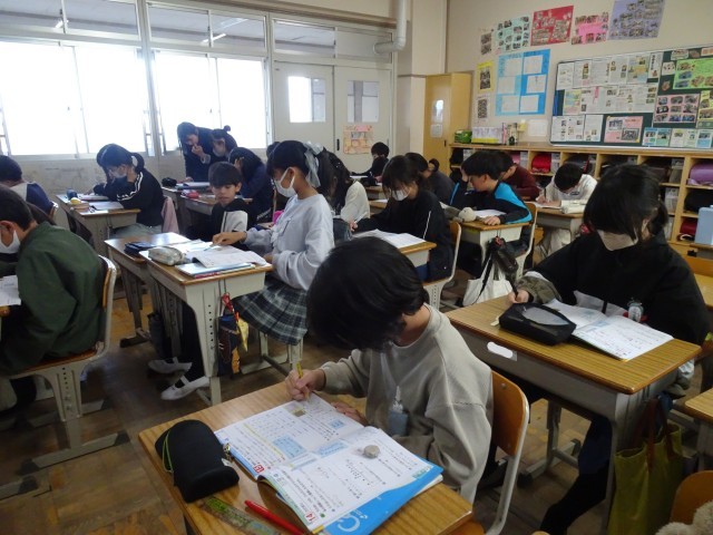 10/28算数 比の利用、見方・考え方を深めよう 公開日 2025/10/28 更新日 2025/10/28 6年 6年生3クラスが同じ時間に算数をやっていました。練習問題をやっていたり、単元テストを行ってたりしました。6年生にとっての小学校生活は、あと半年。学習も少しずつ6年間のまとめに向かっていきます。 +4 6年生