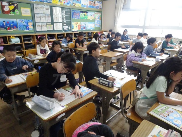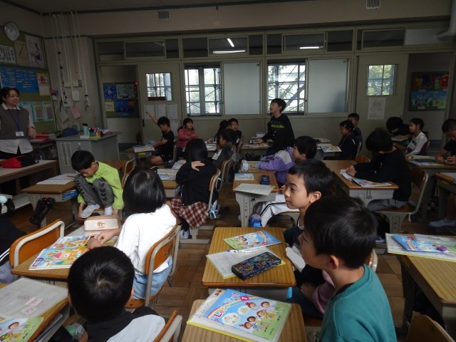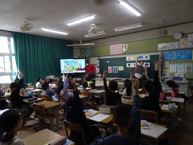 ALTの先生が出す問題に、なんとしてでも答えようと、たくさんの手が上がります。