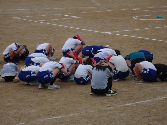 授業中ですが、とっさに地震から身を守るシェイクアウトができています。