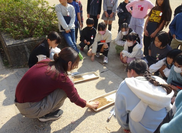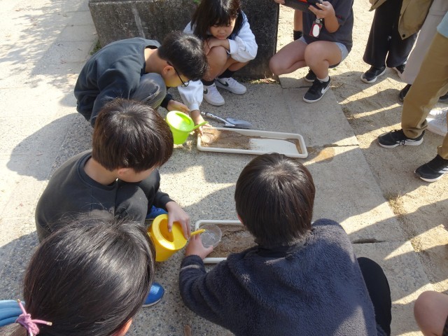 実際に流れる水の量を変えて、土地の変化に違いがあるか実験しています。