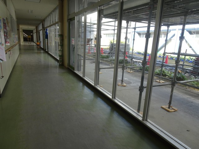 作業も終わりに近づき、今週は校舎回りの足場が崩され始めました。