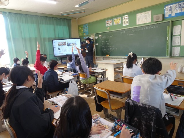 黒船の描かれた2枚の絵を見ながら、日本の様子について考えました。