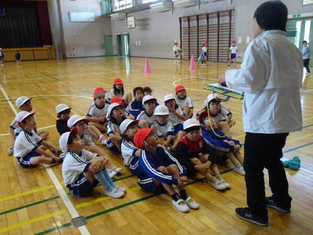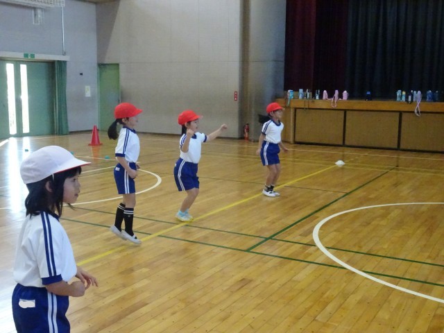 玉入れの球を宝に見立てて、宝物を取りに行く、おいかけっこです。