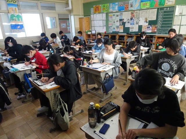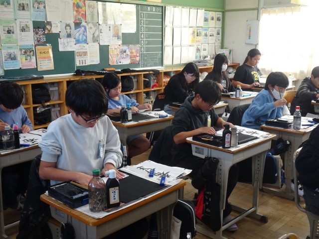 前に書いた自分の字と手本を比べて、自分の課題に挑みます。