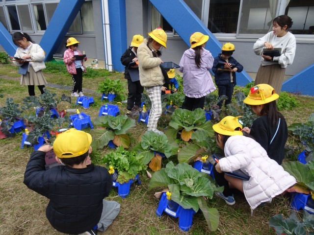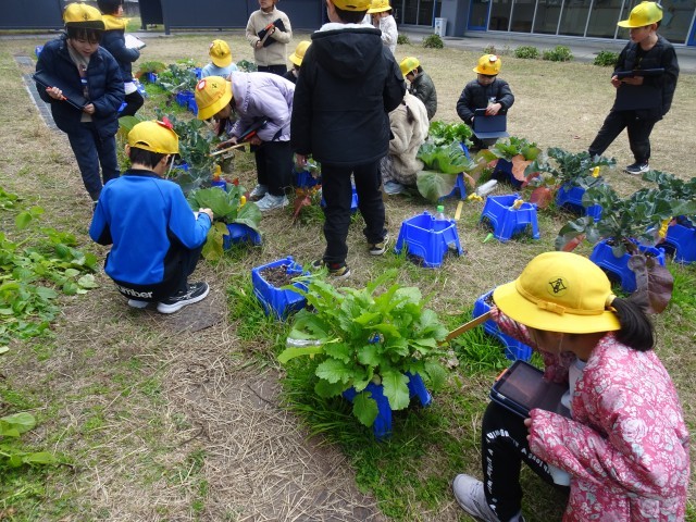 1/8生活 冬野菜を育てよう 公開日 2026/01/08 更新日 2026/01/08 2年 冬休み中、すくすくと育った野菜。おいしそうでしょう?今日は、どれだけ成長したか観察しています。ものさしで大きさを測っていた子が、「ボクの201㎝あったよ!」とのこと。算数でものさしの使い方を学習したけれど、忘れちゃったようです。担任と一緒に確認し、20㎝だと確認できました。忘れたおかげで確認できたので、しっかり覚えることができそうです。 +4 2年生