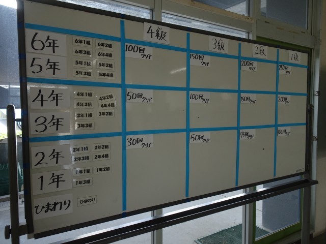 長なわとびは、クラスでのチャレンジになります