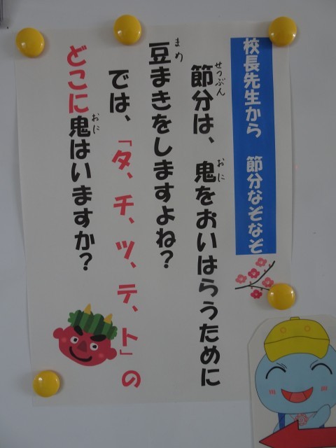 そして、校長先生からは、節分にまつわるなぞなぞ。