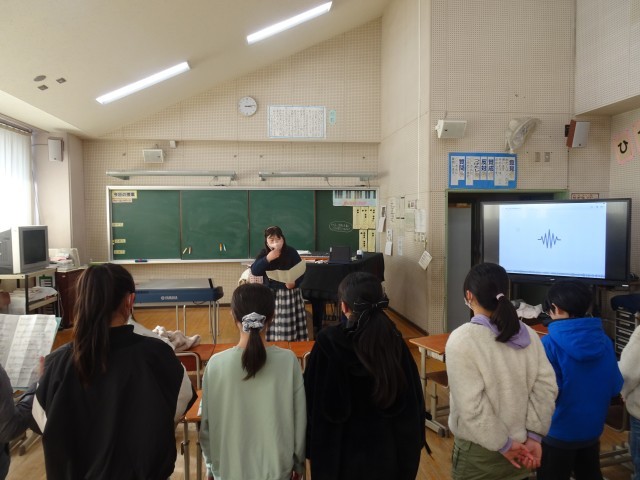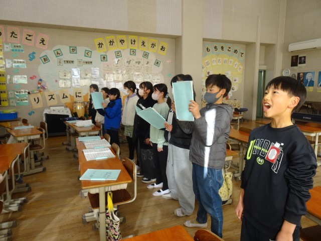 卒業式に6年生と一緒に「旅立ちの日に」を歌います。