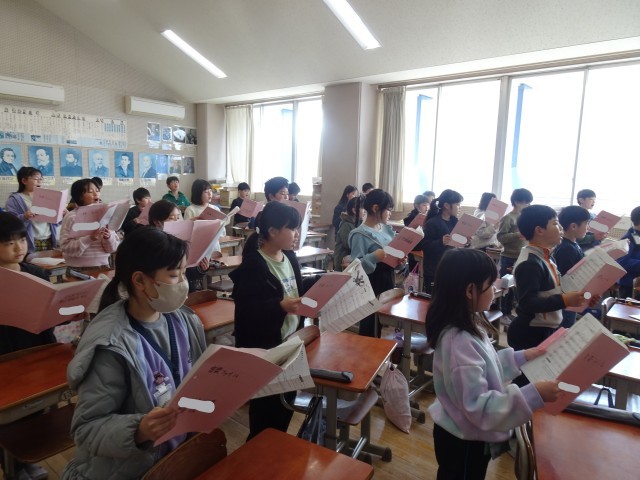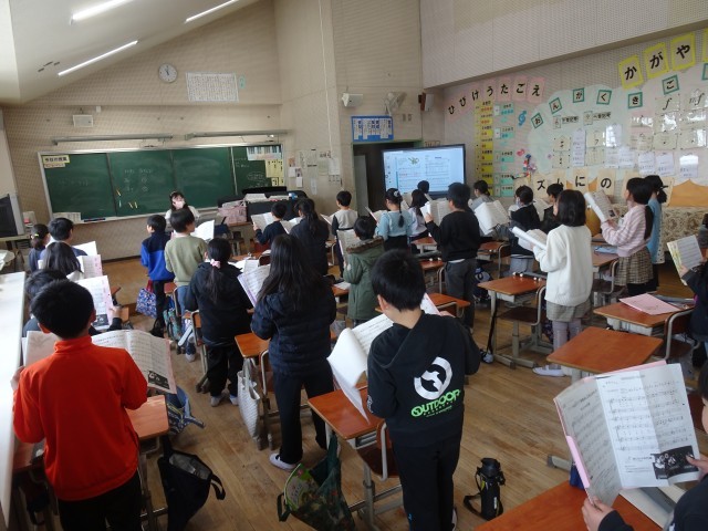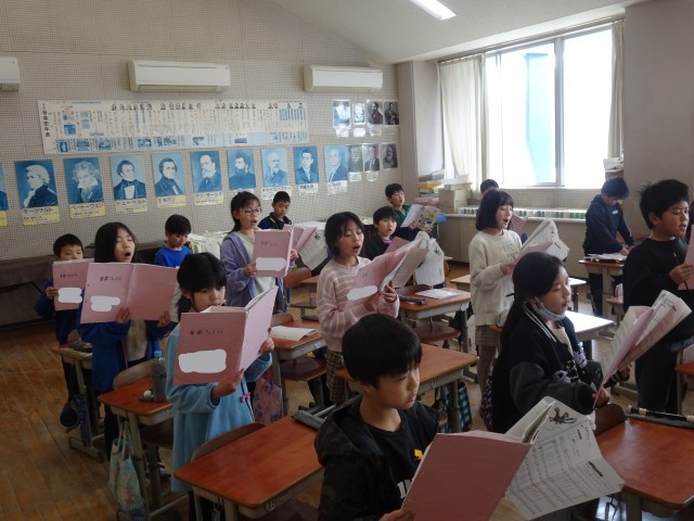 「きれいな声で」と言葉をかけると、ただ歌うだけでなく、どのように声を出したらよいかを考えながら歌います。