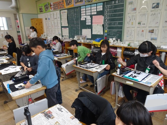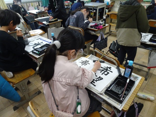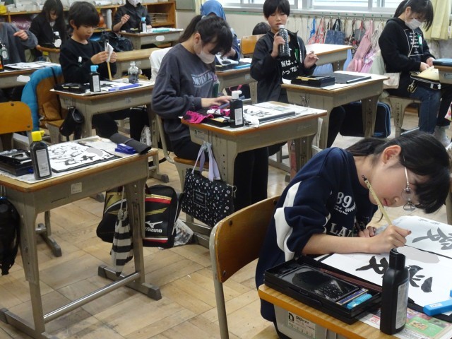 へんとつくりの関係や筆遣いに注意をしながら,集中して取り組みます。