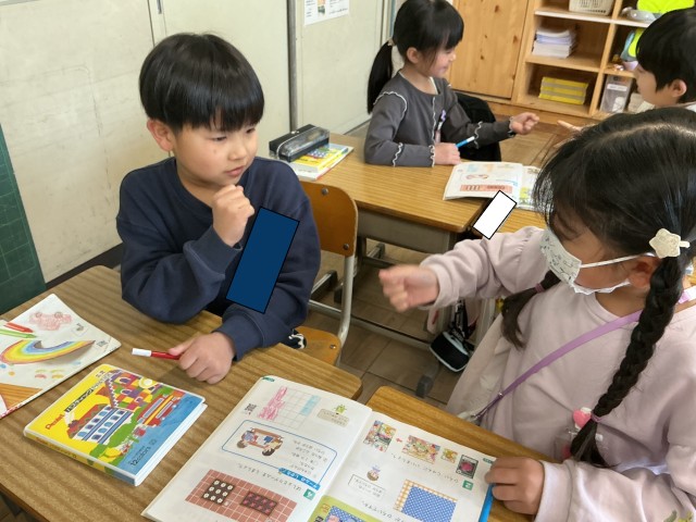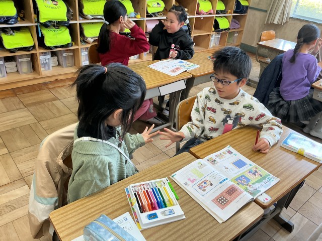 じゃんけんをして、勝ったら色を塗ることができる「陣地どりゲーム」を行いました。