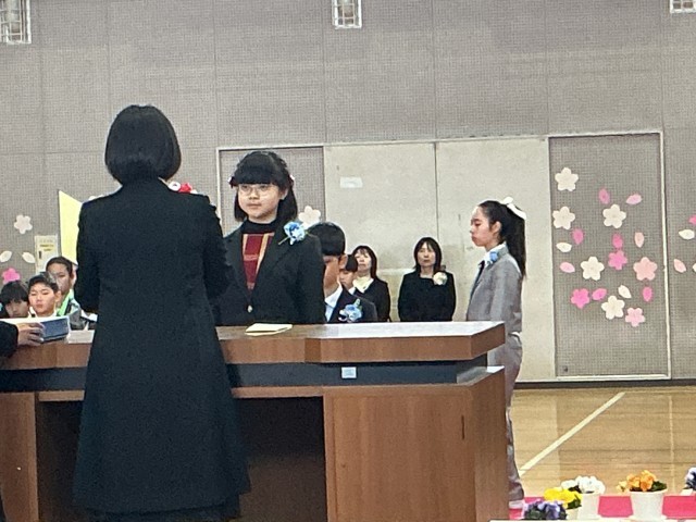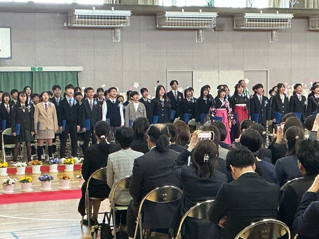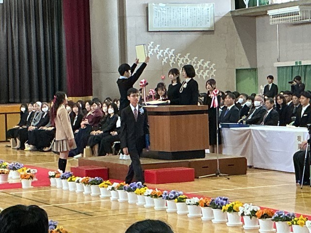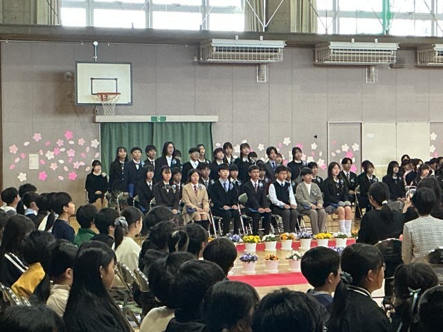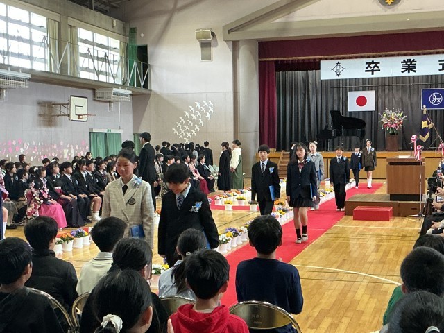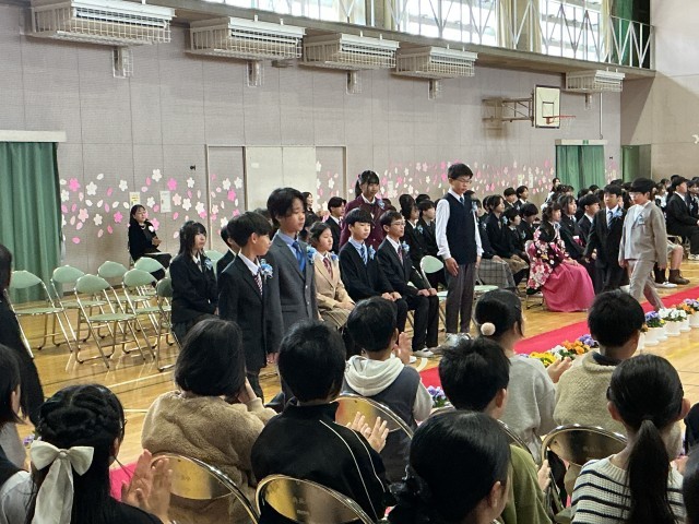 3/19卒業式 公開日 2026/03/19 更新日 2026/03/19 学校行事 昨日から振っていた雨が上がり、柔らかな春の光に包まれて、117名が共長小を巣立ちました。これからの生活に不安もあるとは思いますが、「仲間との絆」と「感謝の心」で、新しい出会いを楽しんでください。卒業生のみなさん、清く明るい夢に向かって励んでいくことを祈っています! +7 学校行事