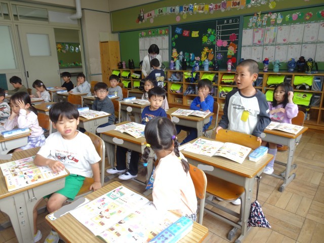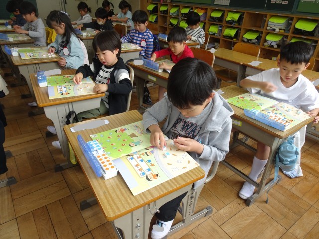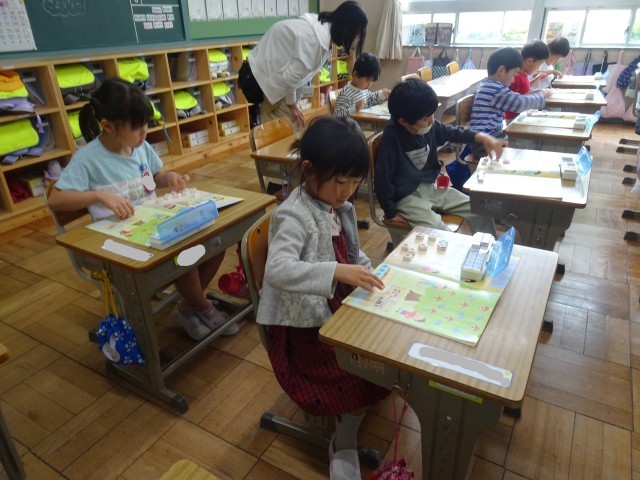 絵の上にブロックをのせながら、数の確認するクラス。