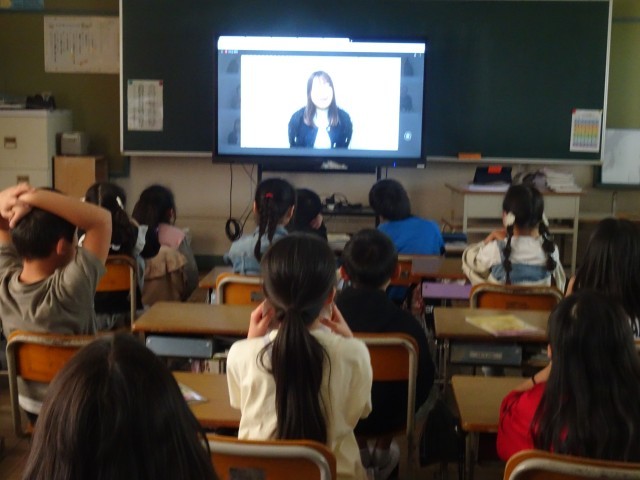 4月に離任された先生方からの動画メッセージを見ています。