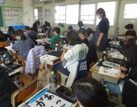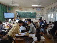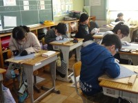 2組は国語で「漢字の広場2」。4年生で習った漢字を使う練習です。絵を見て文を作ります。