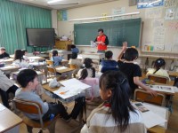 「まちたんけん」で見たことや地域の方から教えもらったことを発表しています。長草天...