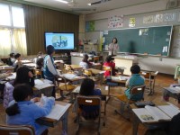 同じ時間に2クラスが国語の学習をしていました。「たぬきの糸車」は、山奥に住むきこ...