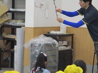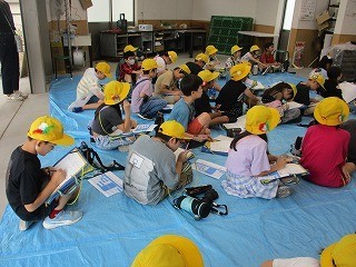 吉田っ子の先輩でもある浅田さんから、ぶどうを作るときの工夫や、年間を通してどのような作業をしているかなどをわかりやすく話していただきました。ときにはクイズをまじえて、楽しくぶどうのことについて説明してくださったので、3年生はメモしたいことがたくさんある様子でした。