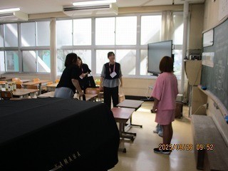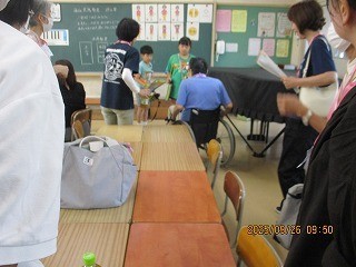 講師の先生方が待っている低学年音楽室に、案内する児童が迎えに来ます。そして、あいさつをして各教室にお連れしました。