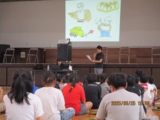 9月25日(木)、大府市役所産業振興部と愛知用水土地改良区大府事務所から講師の先生をお迎えし、4年生が愛知用水と大府の農業についての出前講座を行いました。