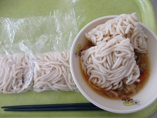 ソフトめん、中華麺、きしめん、白玉うどん・・・、給食の麺の種類はいろいろあります。