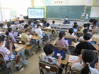 生活科では、「いきもの大すき」を行っていました。吉田小学校の飼育小屋にいるうさぎ(もなかとチャーリー)とクジャク(ラッキー)を思い浮かべながら、動物を大切にすることについて考えました。その後、ロイロノートを使って、動物クイズに挑戦しました。正解だと思う番号を書いて、提出箱に提出しました。