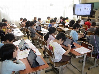 音楽では、「カルメン」の前奏曲を、音の大きさに気をつけて聴きました。聴き取った楽器の名前をタブレットに書き込みながら聴きました。