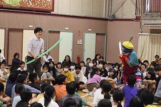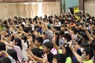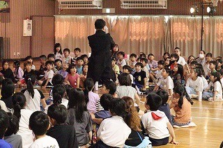 イリュージョンマジックあり、コメディあり、一輪車ありの、あっという間の時間でした。「世界中の子どもたちに笑顔を届けるスマイルクリエーターであり続けたい」」という思いで活動されているパフォーマンスラボさんの演目は、本当に吉田っ子たちを笑顔いっぱいにしてくださいました。