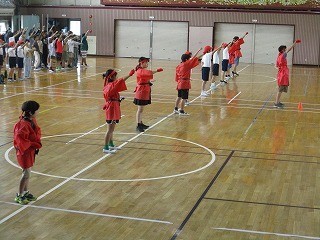 本来なら、運動場と体育館で行う予定でしたが、運動場のコンディションが悪かったため、白組は教室で行いました。
