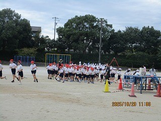 運動場では、2・4年生ペアが合同で、徒競走の並び方等を確認していました。ペアが競技をしているときにはいっしょうけんめい応援する姿が見られました。応援してもらえると、うれしいですね。