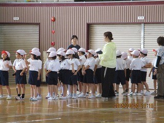 体育館でも1年生が運動会の練習をしていました。1年生にとっては、小学校で初めての運動会。本番では、みんなで声を掛け合って、練習の成果を発揮できるといいですね。