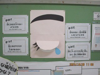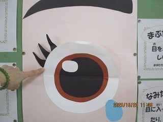 まゆ毛にもまつげにもまぶたにもなみだにも、ちゃんと役目があるのですね。まだ見ていない人は、保健室前に見に行ってくださいね。