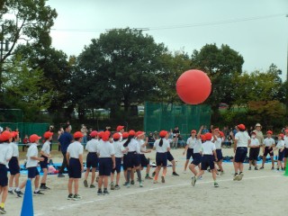 赤と白の大玉が、勢いよく進んでいく様子は、げんきいっぱいの吉田っ子運動会になくてはならない競技です。