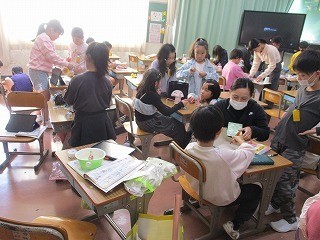 2年生が生活科でおもちゃを作っていました。次の授業公開でも、そのおもちゃを披露します。