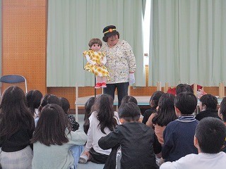 今日は2年生が読み聞かせをしていただきました。絵本の読み聞かせだけでなく、腹話術やクイズなどで、楽しませていただきました。
