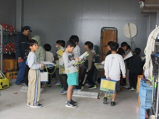 吉田分団は、吉田小学校正門のすぐ脇にあり、地元の方が有事の時には消防団員として活動されています。もと吉田っ子の方も何人かいらっしゃいました。