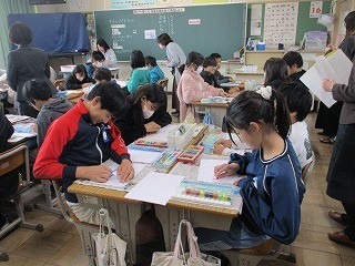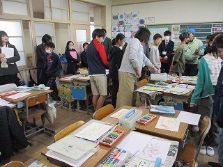 昨日、本校に大府市内小中学校の図工・美術主任が集まり、授業研究を行いました。